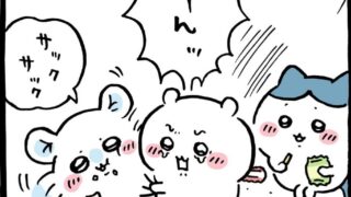 ちいかわ 【ご、ご、ゴキュッ】ハチワレはさ~ そういうとこだよ【モモンガ登場】 ラッコ先生より先に 招かれざる客モモンガ登場いつの間にか来たよモモンガ 勝手に食べてるし私の予想では モ「よこせッ」ち「イヤッorヤダー」の流れだと思ってたむせるちいちゃんはスルーで「いつのまにおすそわけ?」と頓珍漢なハチちいちゃんからモモ... 2025.09.13 ちいかわナガノ作品